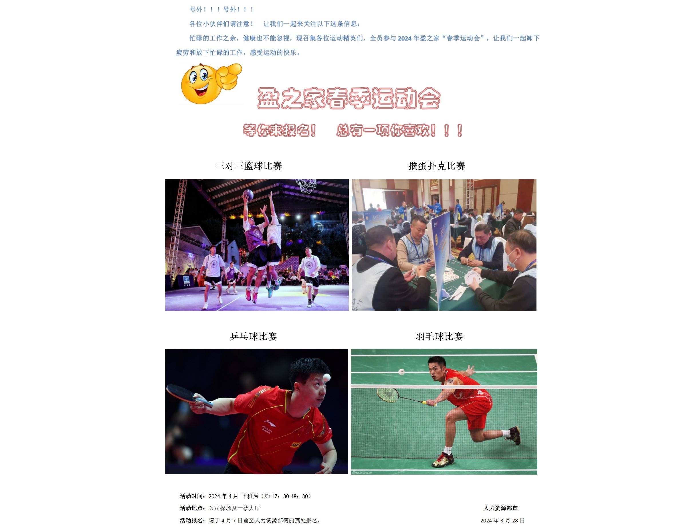 2024年盈之家春季運(yùn)動(dòng)會(huì)各位小伙伴們請注意! 讓我們一起來關(guān)注以下這條信息: